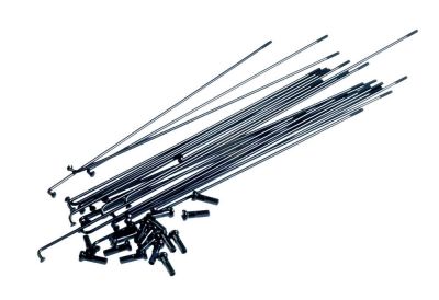 50 forged spokes in black + black nipples or chrome + chrome nipples, 305g (50 spokes + nipples)