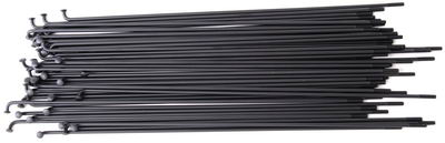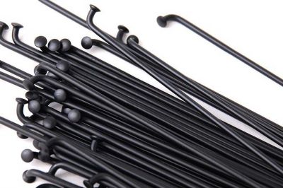A straight 14 gauge spoke, made from hi tensile steel with a coloured coating. Comes supplied with 16mm black nipples and sold in a pack of 40 spokes.