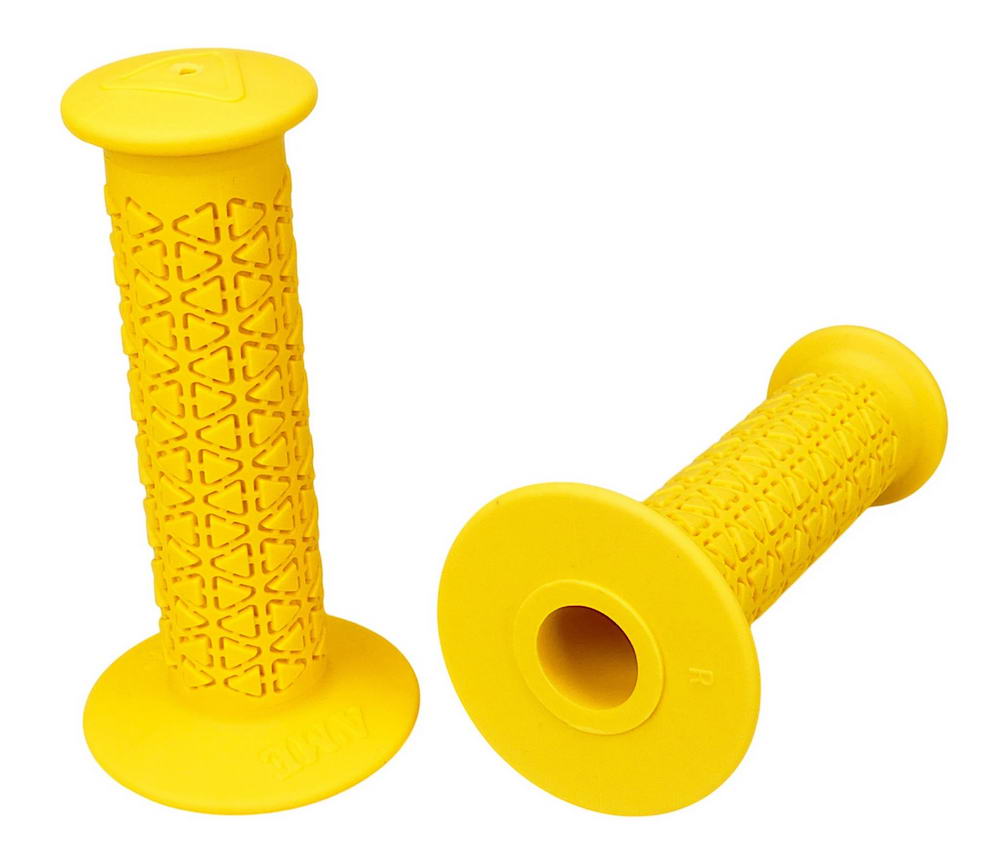 Unleash the ultimate grip experience with A'ME Round Pattern BMX Grips! Crafted from the cutting-edge Vulcathaneâ„¢ compound, these grips redefine durability and comfort in the BMX world. Engineered with UV stabilizing ingredients, they resist oxidation and ozone, ensuring a no-slip surface in any condition.