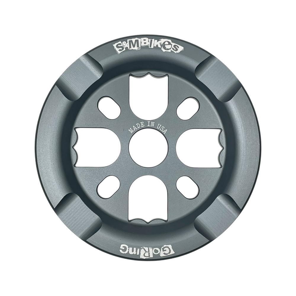 In true Shield style, UK team shredder Nathan Goring rides whatever’s in front of him and always has a good time doing it. In need of a new guard sprocket, Nathan sketched one up featuring four Shields and four corresponding mounting positions. After sampling a few and nailing down some finishes and laser art we bring you the stylish and durable GoRing! Available in 25, 28 and 30T, Matte Black, Matte Grey (not as dark as the Mid School Dark Matte Gray) and Bright Gold. Sketched in the UK, made in the USA – ridden everywhere!