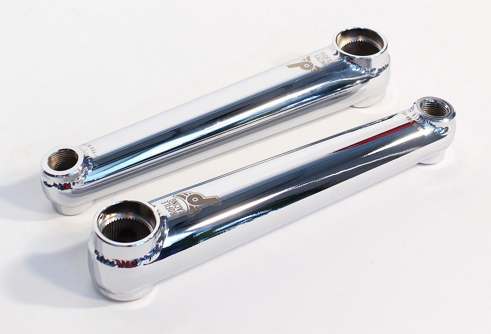 - Made in USA - Oversized arms from heat-treated 4130 Chromoly - 22 mm GDH Chromolyspindle, 152.4 mm (6") length - Alloy spindle bolts with 8 mm hex broach - Includes both crank arms, spindle, spindle bolts, and crank tool - Spline drive only, arms have no sprocket bolt bosses (must use 22 mm spline-drive sprocket) - 855 g (175mm arms, spindle, bolts)