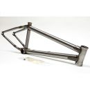 Der Rahmen ist das zentrale Teil Deines Bikes. Für Flatland und Race gibt es spezielle Rahmen. Die meisten Rahmen fallen in die Kategorie Trails, Park & Street. Die verschiedenen Rahmenmaße und Winkel haben sehr viel Einfluss auf das Handling. Moderne Street Rahmen haben einen steileren Steuerrohrwinkel (normal ist 75°) für Nosemanual Tricks und einen kurzen Hinterbau für einfachere Manuals. Trails Rahmen haben eher ein flacheres Steuerrohr für ein ruhigeres Handling und einen längeren Hinterbau zum Pushen. Die Oberrohrlänge sollte wieder an Körpergröße und Einsatzbereich angepasst werden. Weitere Unterschiede gibt es bei den Tretlagergrößen der Rahmen. Am gängigsten sind MidBB- und SpanishBB-Tretlager. Race Rahmen haben oft EuroBB- und Oldschool Bikes USBB-Tretlager. Bitte wähle aus einer der folgenden Kategorien aus: