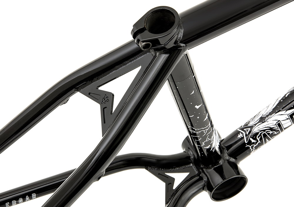 - Larry Edgar signature frame - Tubing Material: 100% Seamless Japanese 4130 Chromoly, multi-butted and tapered tubing - Head Tube: 74.5ÅŸ - Seat Tube: 71ÅŸ - Rear End: 13.8" / 13" on 20.8" - Standover: 9.25" - BB Height: 11.5" - BB type: Mid BB - Head Tube Height: 113 mm / 4.45" - Internal and external top and down tube gussets - Investment Cast seat clamp with the Horizontal Cut System - Investment Cast Dropouts with integrated chain tensioners - EBS Brake kit not included - Weight: 2.35 kg (21")
