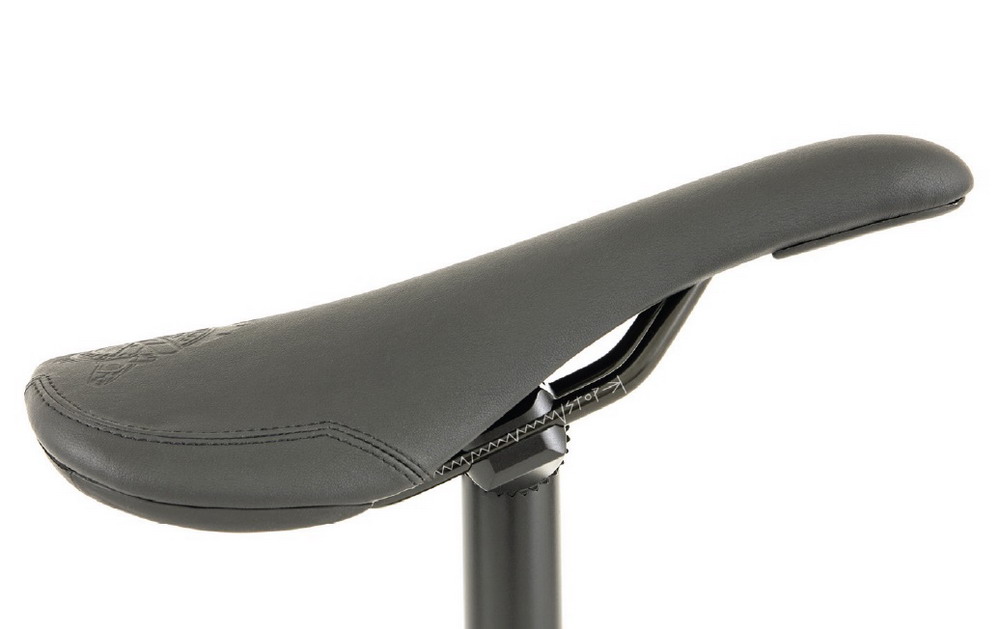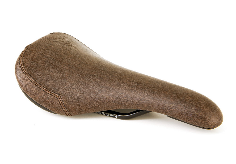 "The Motosierra seat is a railed version of the Sierra Tripod seat design that utilizes a large railed base with 5 mm thick foam that has the classic railed shape, and a 100% synthetic leather with a clean embossed new Motosierra line logo."