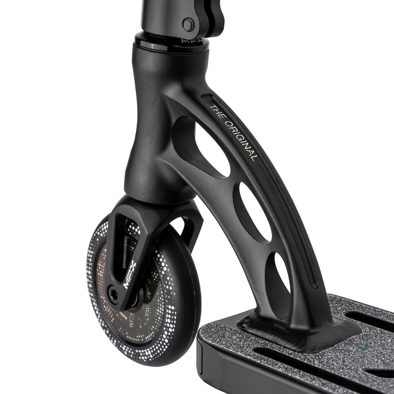 Deck: MGP Origin 4.5" W x 19.5" L Integrated, Rounded Box Deck Headtube: MFX Integrated & Sealed Bearings Forks: Voltage Threadless 6061 Alloy 120mm Fork / Standard IHC Bar: MGP Low Riser 21" W X 23" T 4031 Japanese Chromoly Bar Grips: 150mm Flageless MFX Soft TRP Swirls Grind Grips with Nylon Bar-Ends Brake: MFX v2 Composite Blitz Bearings: K-2 Abec 9 High Speed Chrome Weight: 3,4 Kg